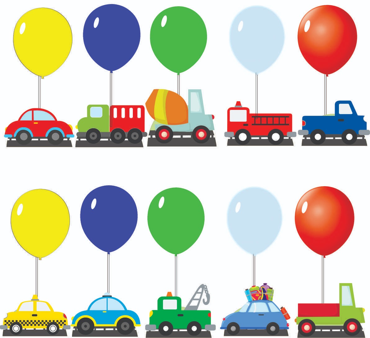 KIT CENTRO DE MESA CARRINHOS COM BALÕES